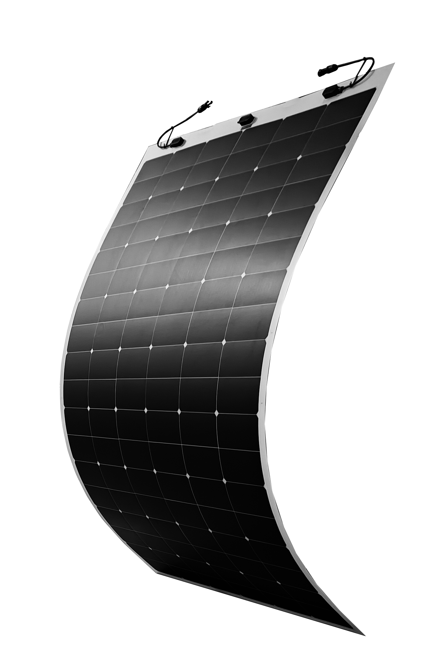 The flexible PV module from Euronergy combines back contact solar cells with a conductive back sheet and an insulating encapsulation. The result is a high-performance, lead-free PV module weighing just 2.5 kg/sqm. This makes the PV module suitable for use on roofs with a low load-bearing capacity. Its flexibility means the PV module can also be used on curved surfaces.