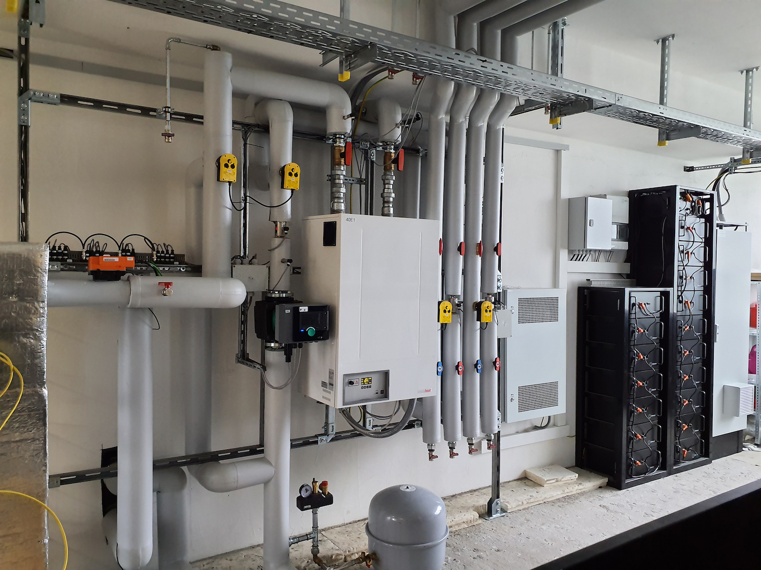 Within the scope of the BiFlow project, a new type of hybrid storage system was built in a dormitory for students and trainees in Bruchsal. The system combines two different storage devices: a lithium-ion battery and a vanadium redox flow battery (VFB). A smart energy management system is used to control the use of the two storage devices to optimize overall efficiency. The lithium battery is primarily used for shorter peak loads, while the redox flow battery handles the longer storage times. The waste heat tanks of the redox flow battery are also used as hot water storage tanks, thereby dispensing with the heat storage tank usually otherwise required. In BiFlow, a thermal coupling module recovers the heat generated by the operational losses of the VFB’s electrolyte tanks. By adjusting the electrolyte composition of the VFB, the electrolyte can remain stable at raised temperatures of up to 50°C during the time required to charge/discharge and for the heat exchange to take place.